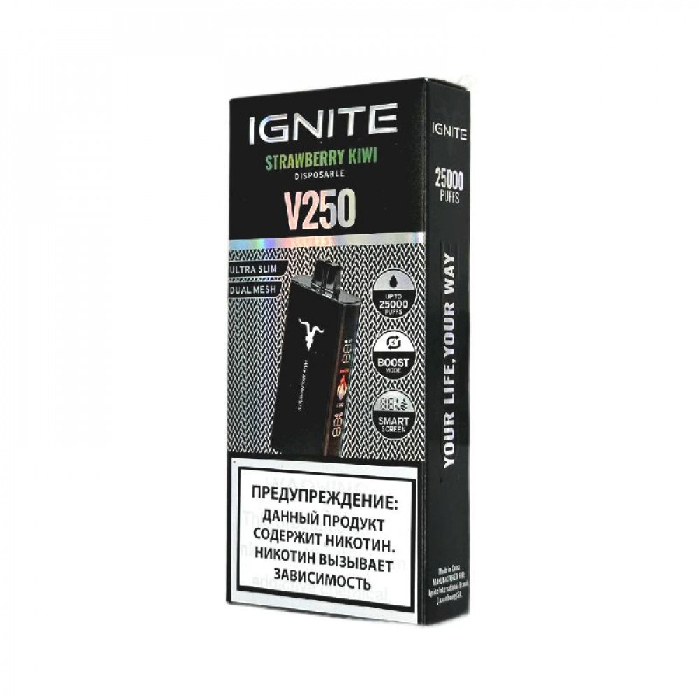 Электронная сигарета Ignite V250 Black 25000 - Strawberry Kiwi (Клубника киви) - купить в Сергиевом Посаде